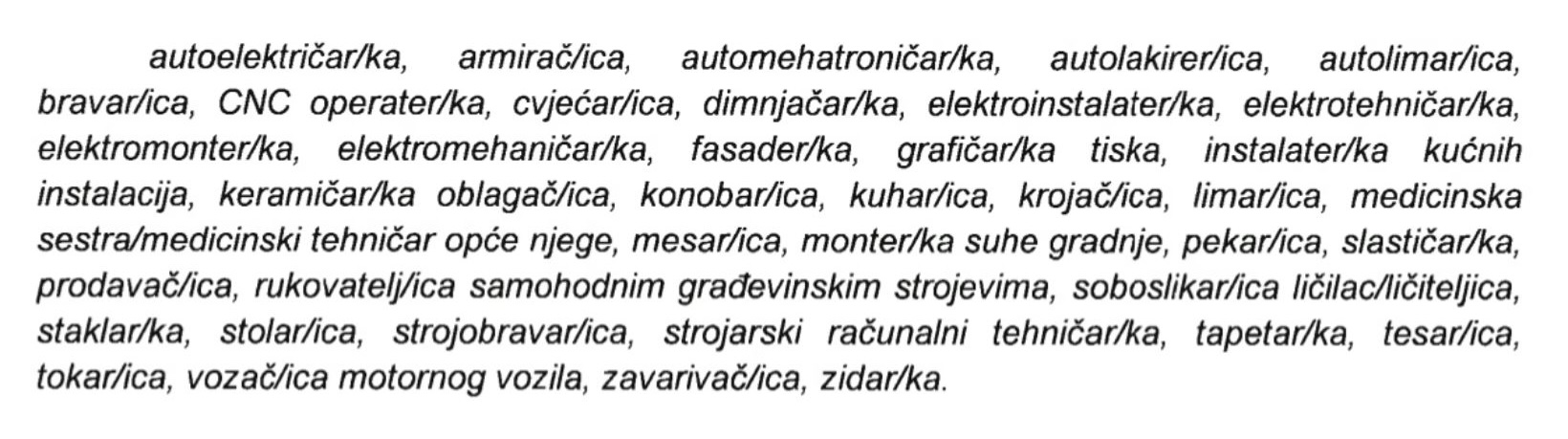 Natječaj obuhvaća širok popis deficitarnih zanimanja: