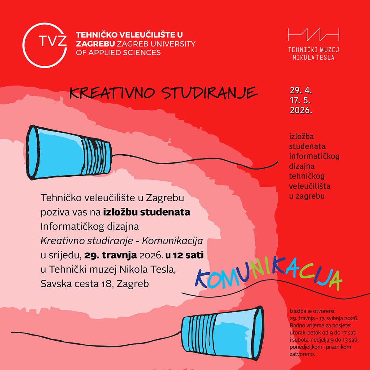 Izložba studenata informatičkog dizajna Kreativno studiranje za svoju petu obljetnicu okupila je kreativnu snagu preko 200 studenata udruženih u zajedničke projekte i radionice na temu komunikacije. U Tehničkom muzeju Nikola Tesla u Zagrebu izlaže se 170 studentskih radova od 29. travnja do 17. svibnja.