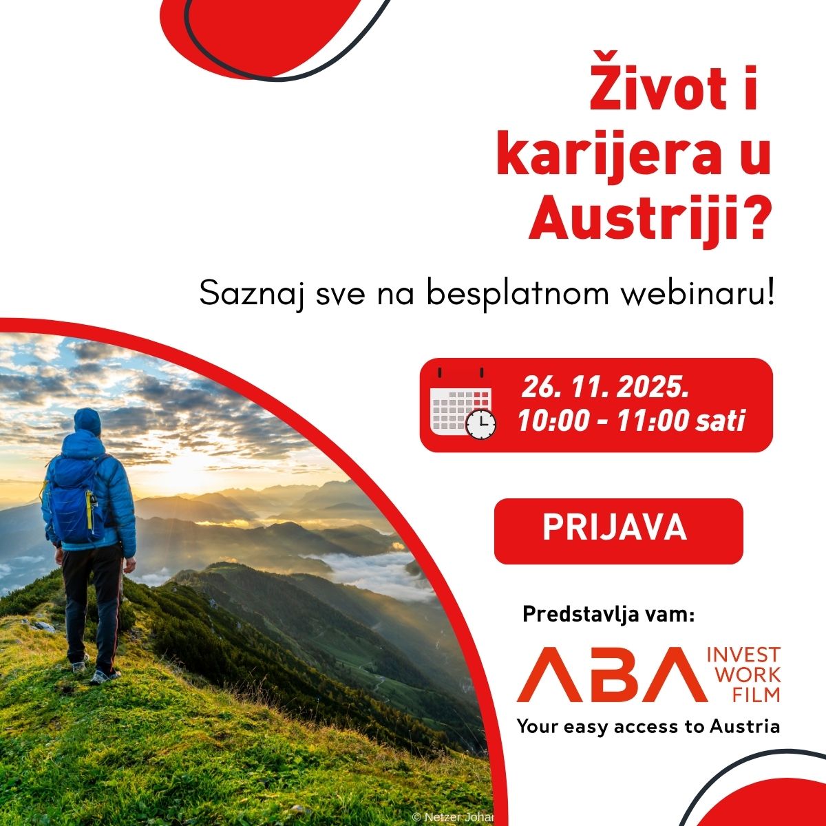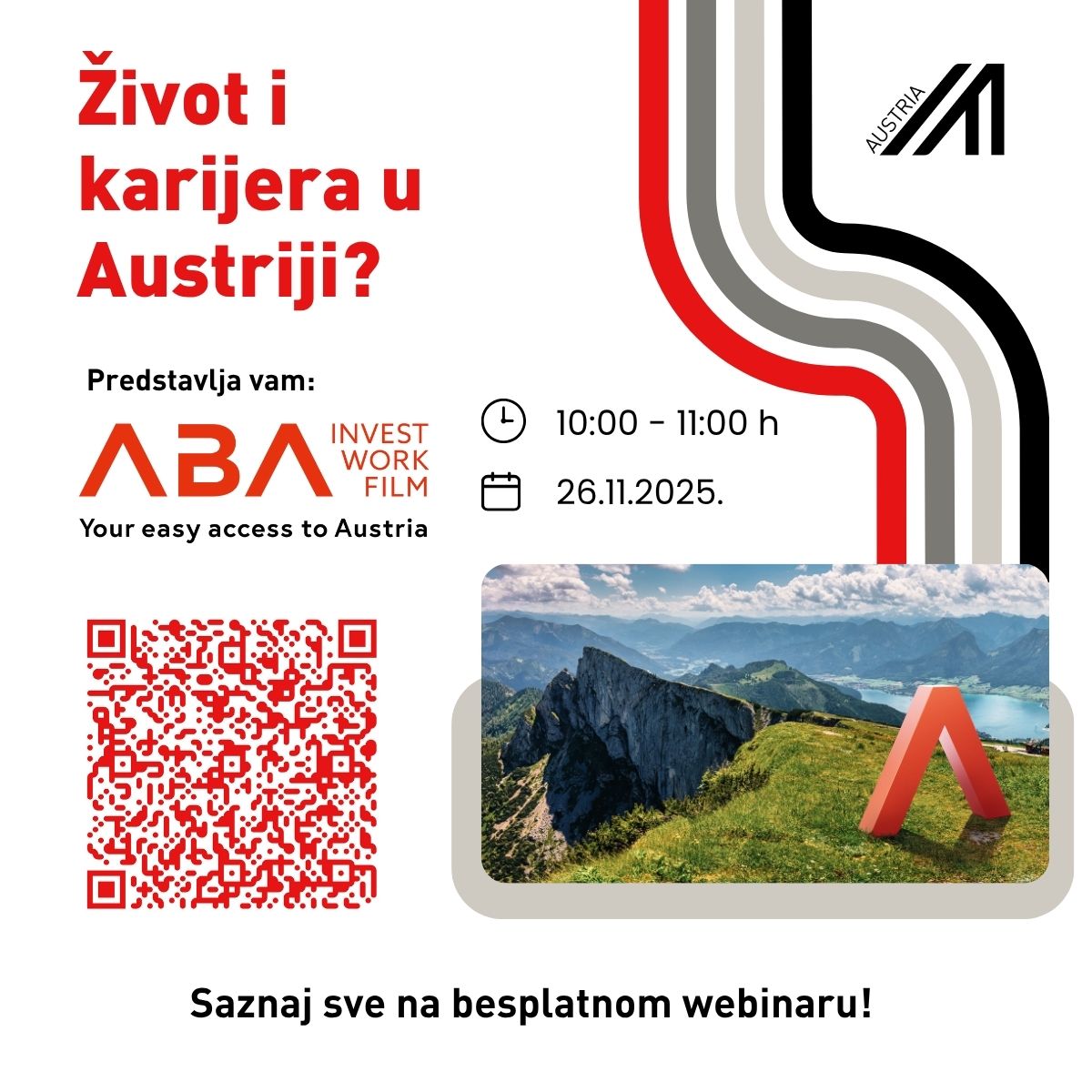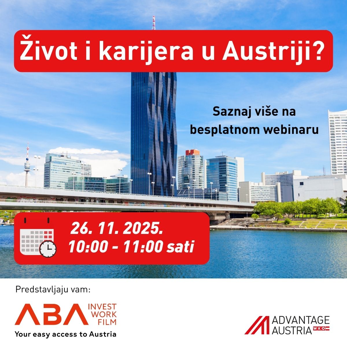 Na besplatnom webinaru Living & Working in Austria saznat ćeš sve što trebaš znati o životu i radu u Austriji — iz prve ruke od stručnjaka iz ABA – Work in Austria, uz podršku ADVANTAGE AUSTRIA Zagreb.