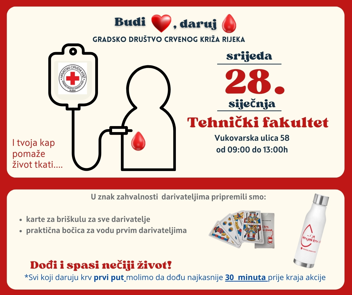 Riječki fakultet organizira akciju darivanja krvi uz simpatične nagrade za sudionike