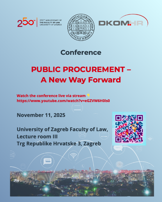 O ključnim pitanjima nužnim za oblikovanje europske javne nabave u sljedećem desetljeću raspravljat će se u utorak, 11. studenog, na konferenciji Public Procurement – A New Way Forward u organizaciji Pravnog fakulteta Sveučilišta u Zagrebu i Državne komisije za kontrolu postupaka javne nabave (DKOM) koja će se održati na Pravnom fakultetu u Zagrebu, na adresi Trg Republike Hrvatske 3.