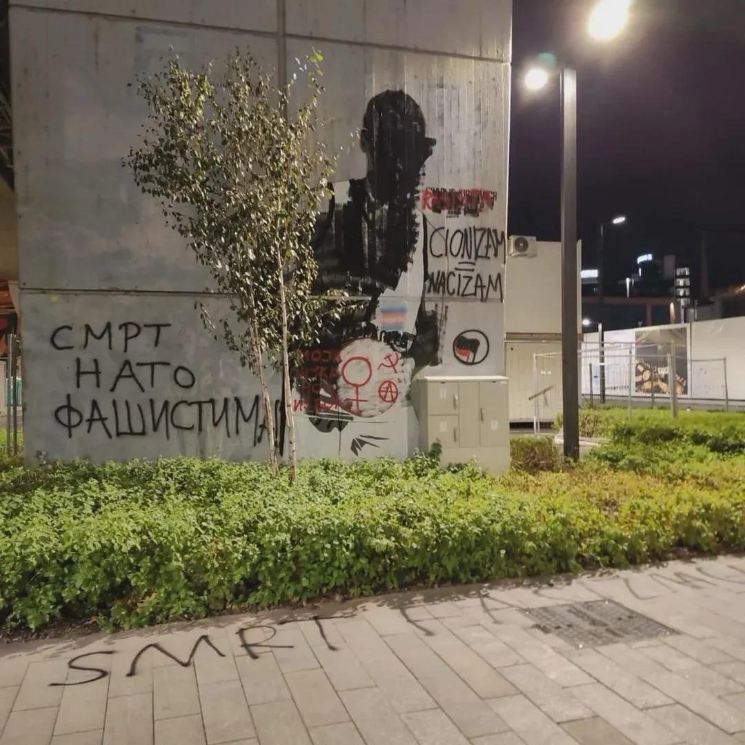 U noći između petka i subote mural je išaran sprejem, a uz njega su osvanule poruke poput: „Smrt NATO fašistima” i „Smrt fašizmu”.