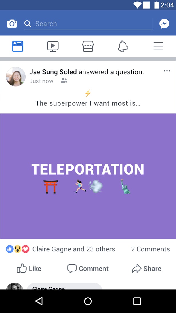 Ova nadogradnja Facebooka uvedena je 5. prosinca. Ako vidite jedan od odgovora vašeg Facebook prijatelja na pitanje na koje i vi želite odgovoriti, jednostavno dodirnite gumb Isprobajte i odgovorite na pitanje. Ili jednostavno možete otići na svoj profil i pronađite Jeste li znali? na lijevoj strani zaslona i počnite odgovarati. Moguće je promijeniti i boju pozadine odgovora.